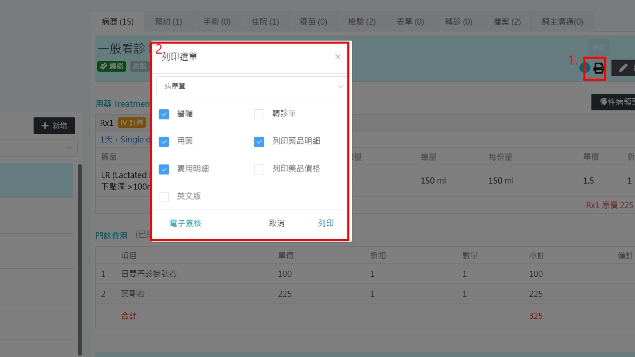 選取 醫囑 用藥 費用明細 列印藥品明細 這些項目