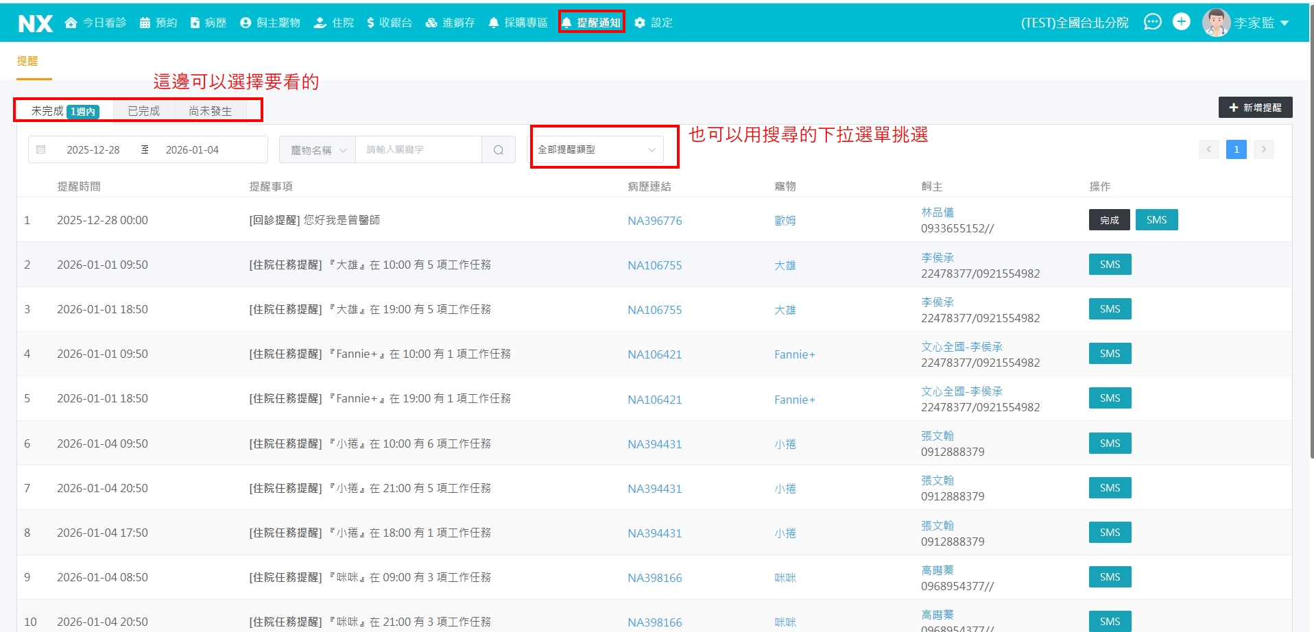 3.因回診需勾選發送簡訊,若醫師未勾選,為避免漏傳簡訊,只能一個一個點進去看嗎?(但若有發送紀錄或可直接核對即可)