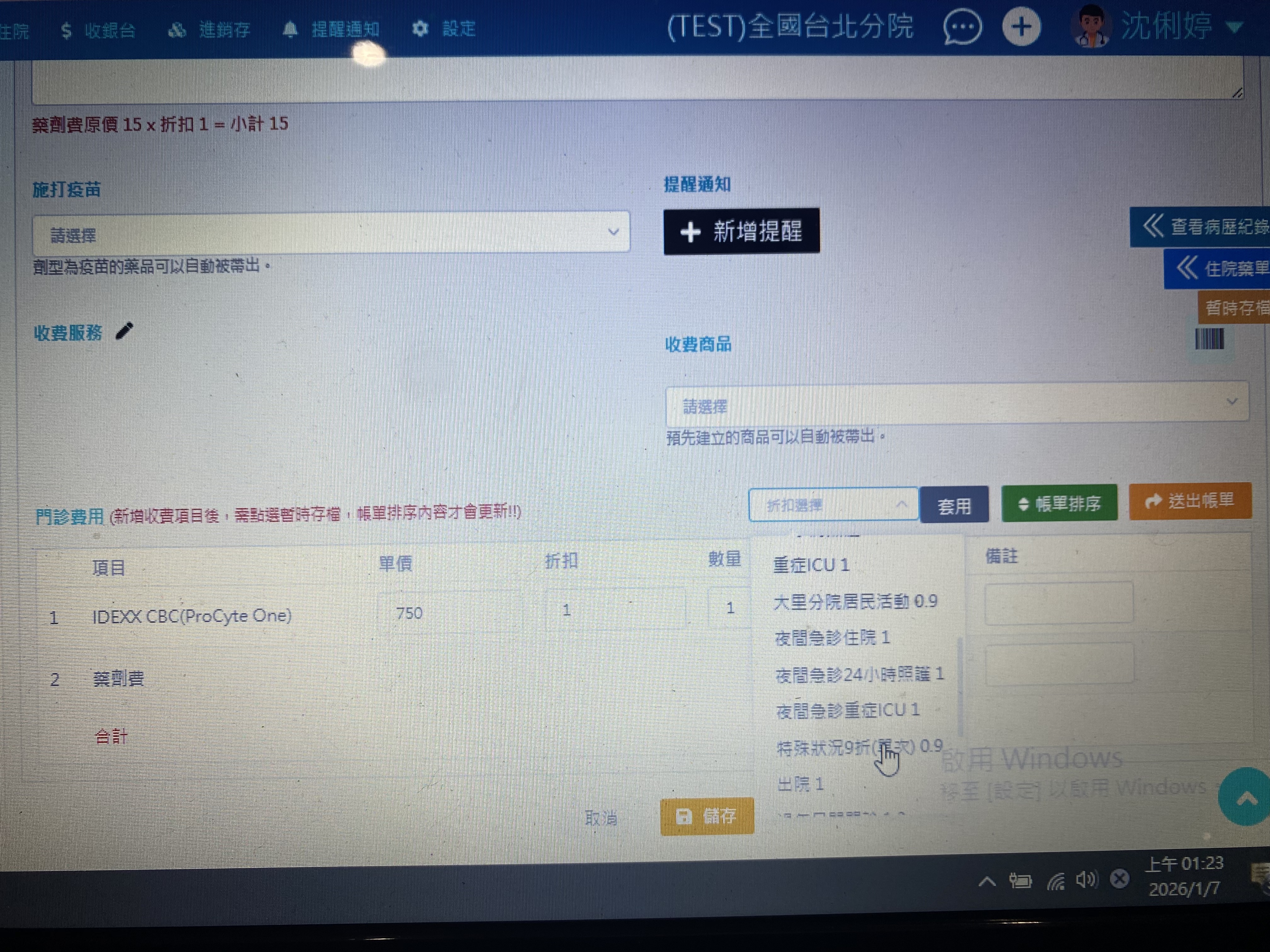 目前發現門診費用,最旁邊有折扣選擇,不知道是否能從這個地方新增折扣?