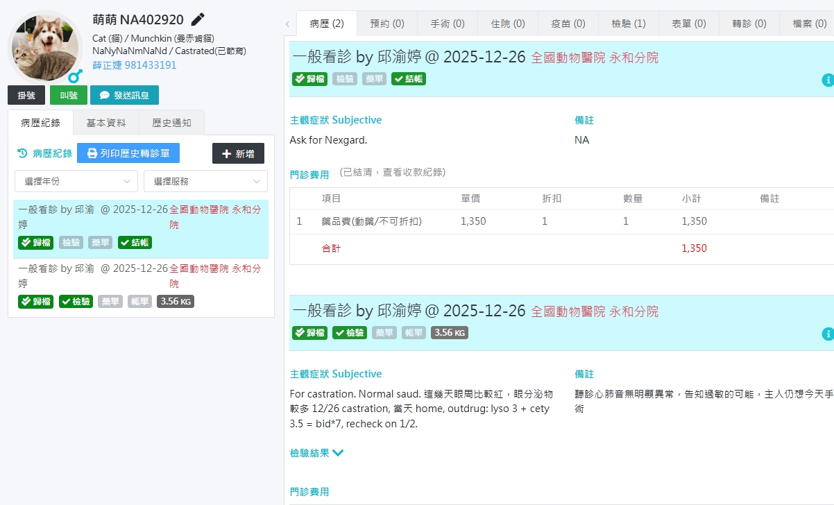 今日回診,病歷號NA402920萌萌未匯入新系統,請協助處理