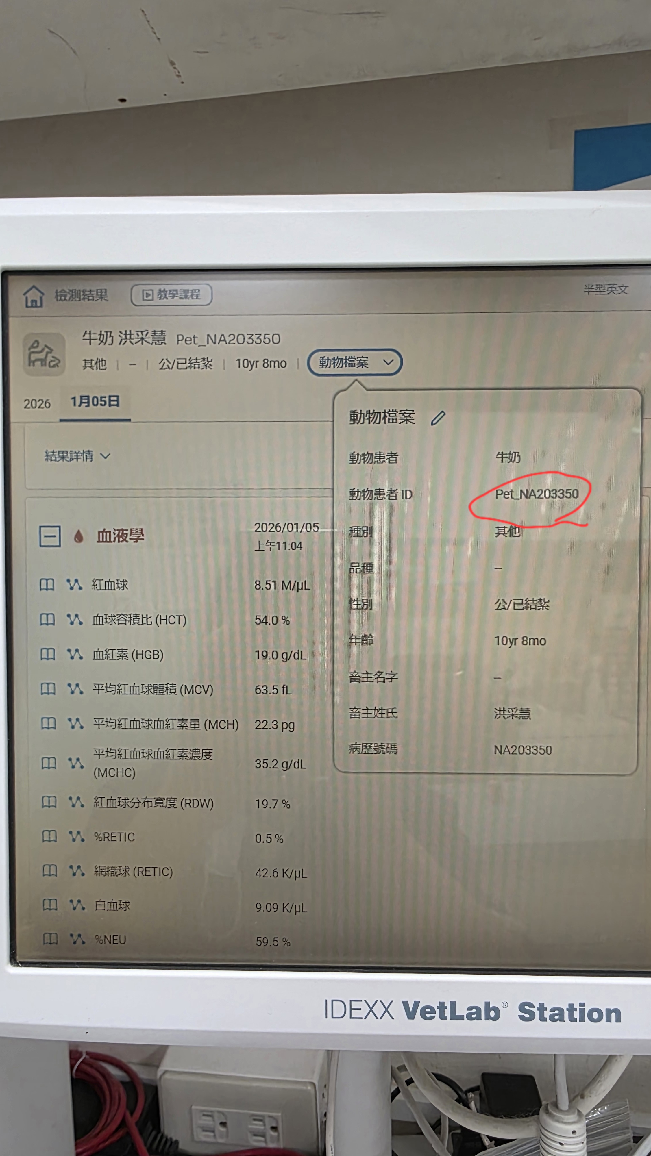 我在懷疑因為nxvet發送的檢驗會再自動產出ID號碼,但我們在idexx設定的資料沒辦法建ID號碼。早上問idexx的時候對方回覆他們會偵測病歷號也會偵測ID,所以沒辦法連動(?