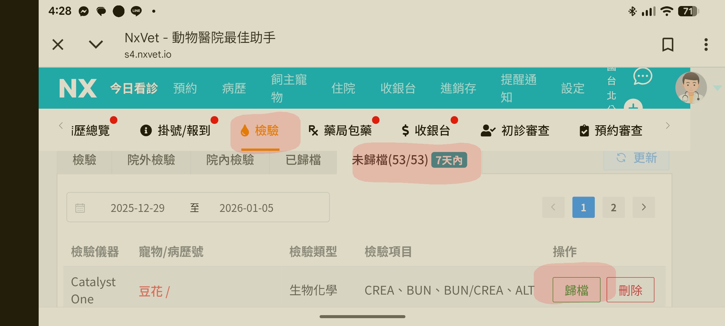 對!剛剛照圖示的方法也沒有辦法自動歸,要手動到nxvet的檢驗再一步驟的歸檔,本來要吶喊哥很麻煩的時候,發現nxvet把品種改好了,可以用nxvet發送檢驗且正確歸檔,所以就沒事了🤣