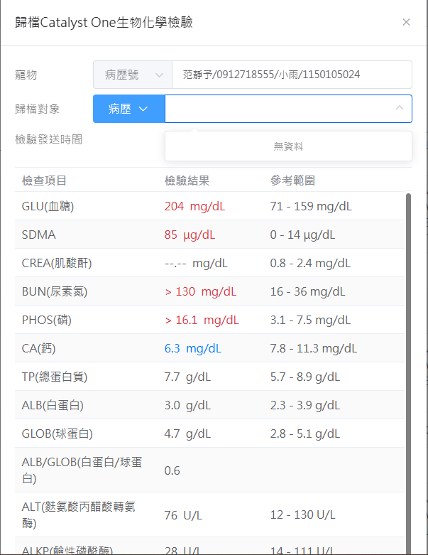 我想這個跟我稍早在line發問的血檢歸檔有相關,目前在idexx手動建檔的血檢並不會自動歸到nxvet