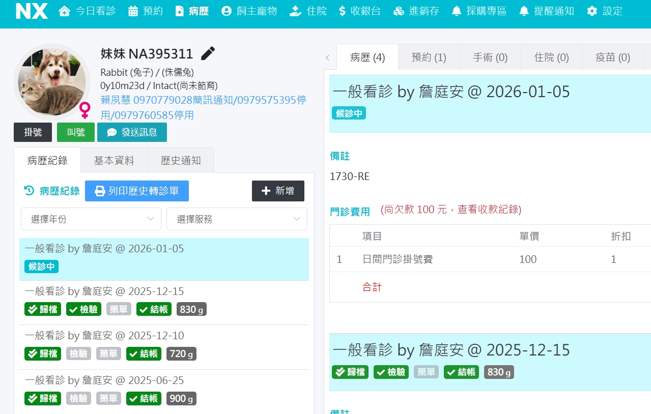 Nxvet 搜尋不到NA395311 妹妹的病歷