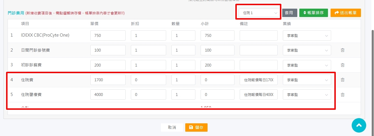 門診後收住院(或絕育洗牙包套),以前會打*號統一key費用在住院單裡,目前nxvet新增的住院動物會有看診欠款金額