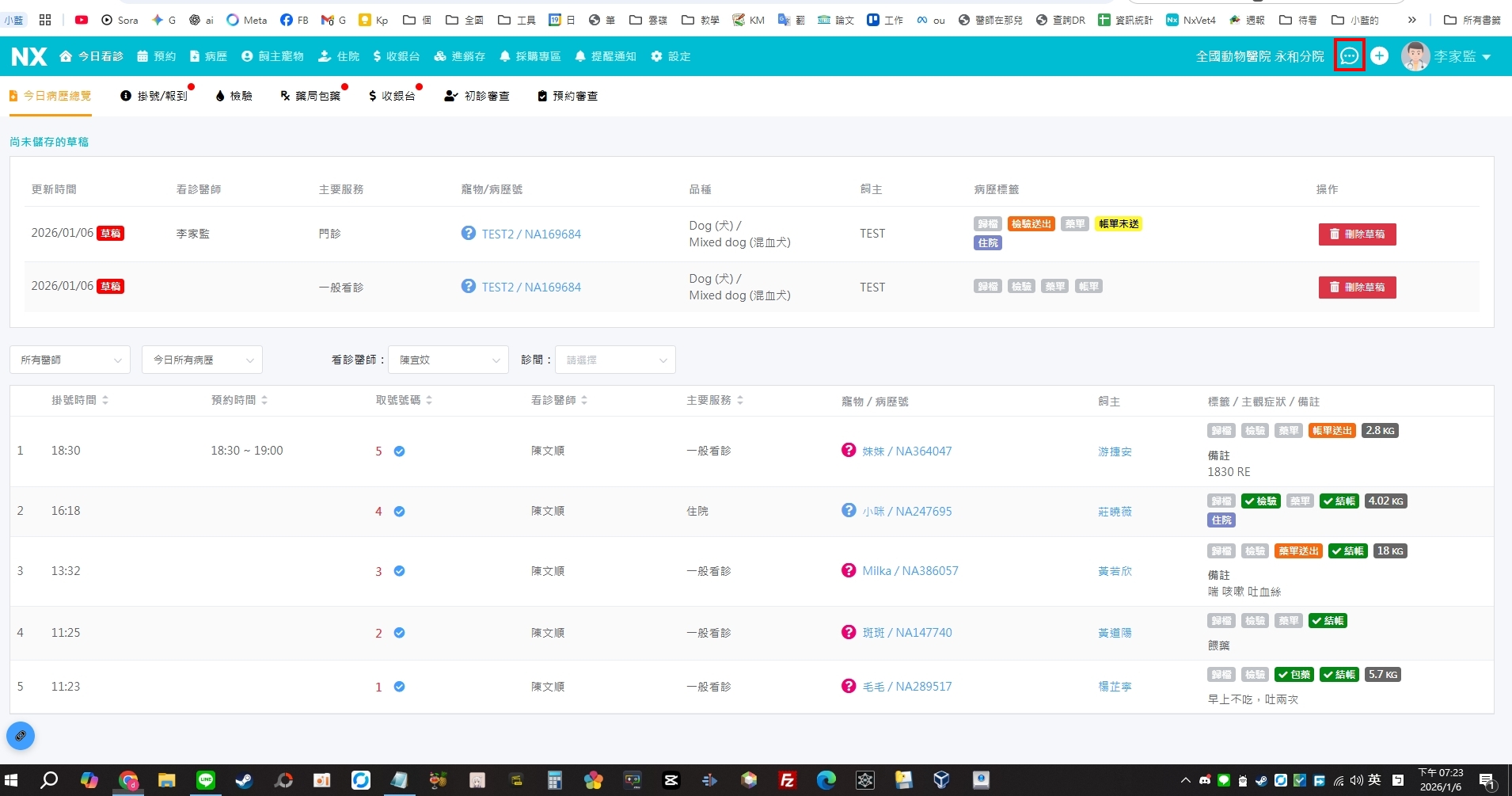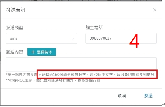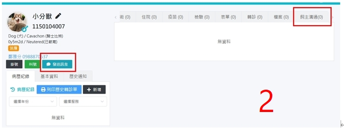2.病歷頁面按「發送訊息」,手機有收到簡訊,但「飼主溝通」完全看不到發了什麼內容給飼主,要去哪才看得到內容?