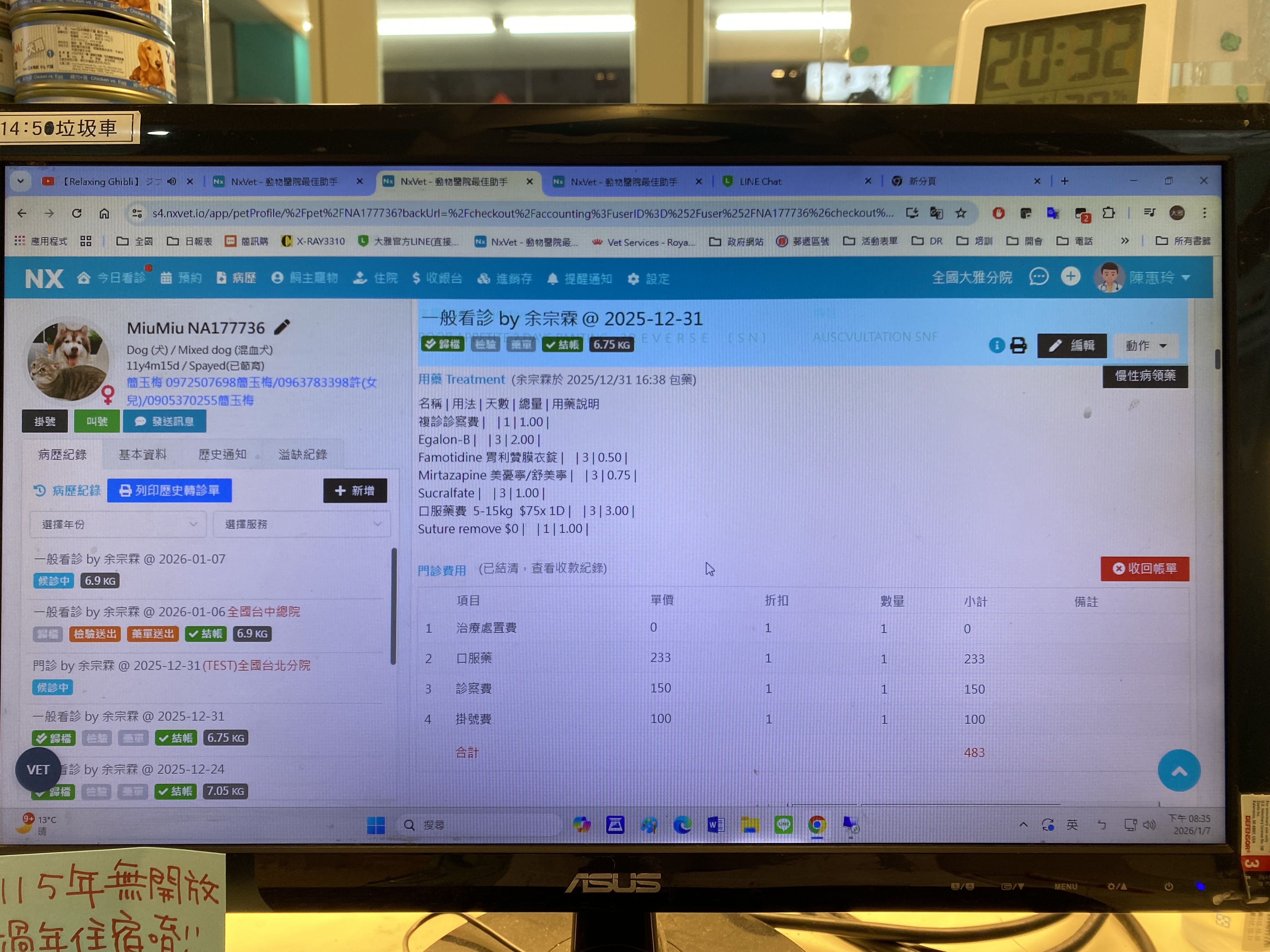NA177736MiuMiu於12/31門診轉換,出現欠款(聯繫nxvet處理中)
