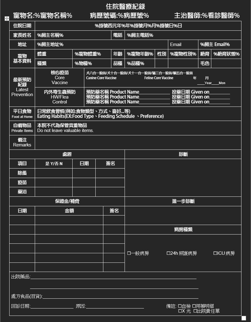 標籤:住院大卡飼主姓名欄位縮小,電話欄位增加長度