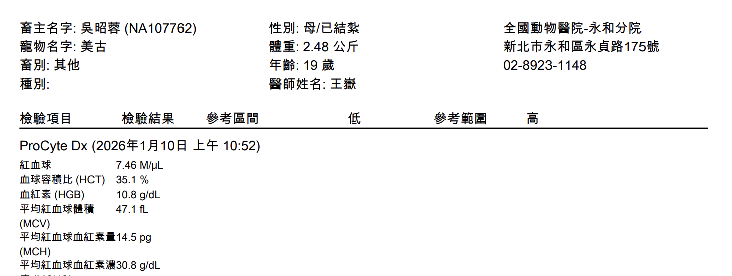 因為病歷資料沒帶入物種,造成IDEXX檢驗沒有參考範圍