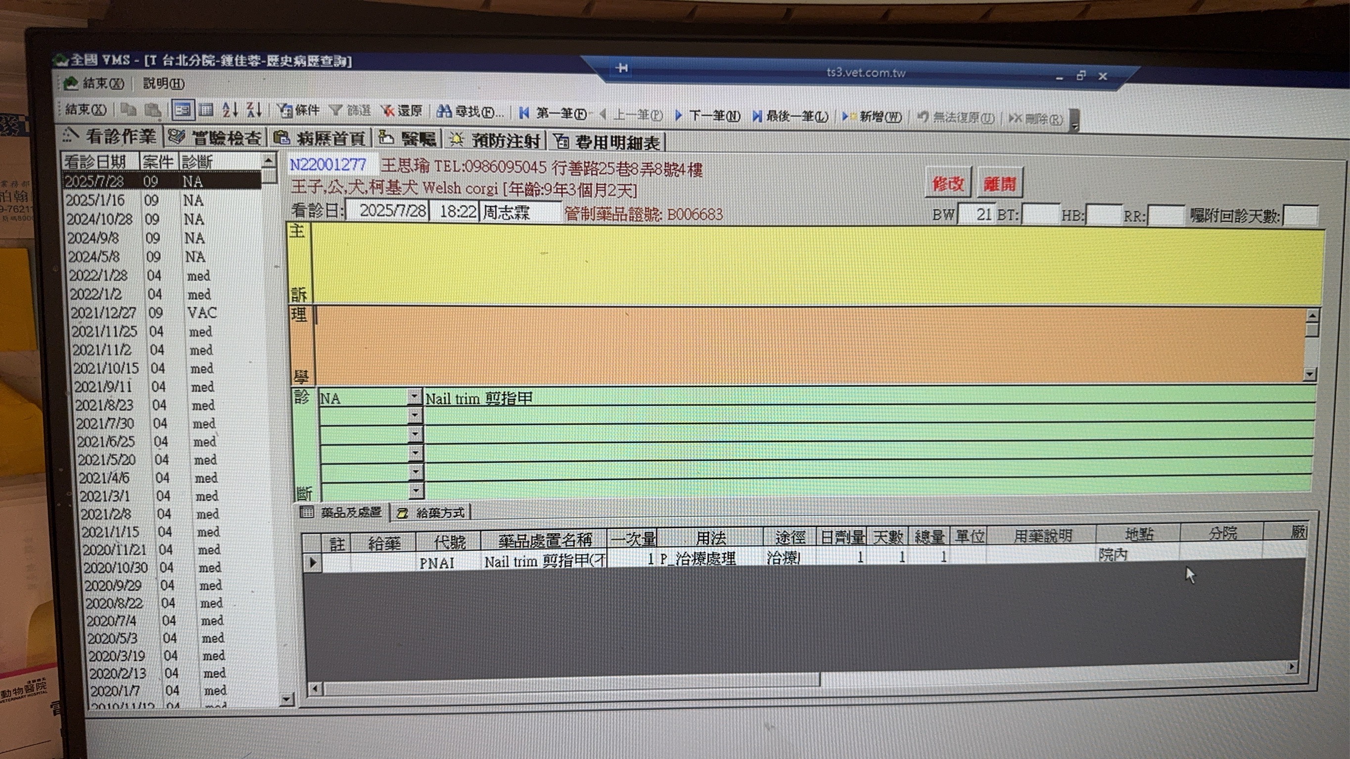 1.主人姓名 2.寵物姓名 3.病歷號碼(手動建立) 4.電話